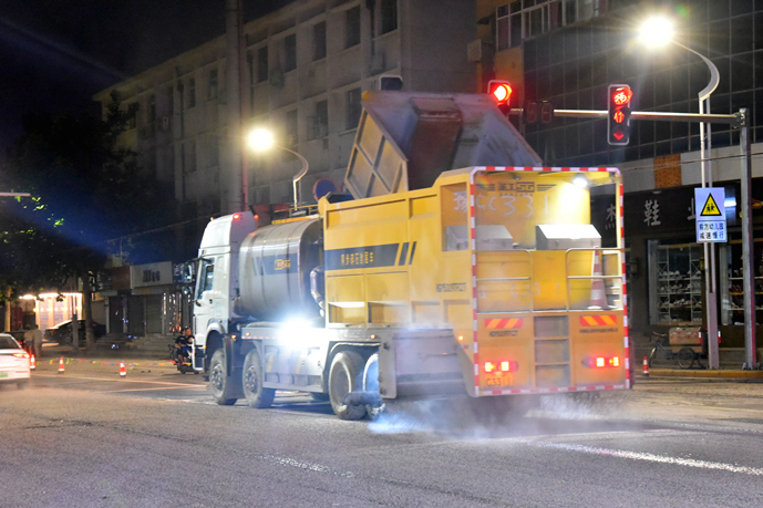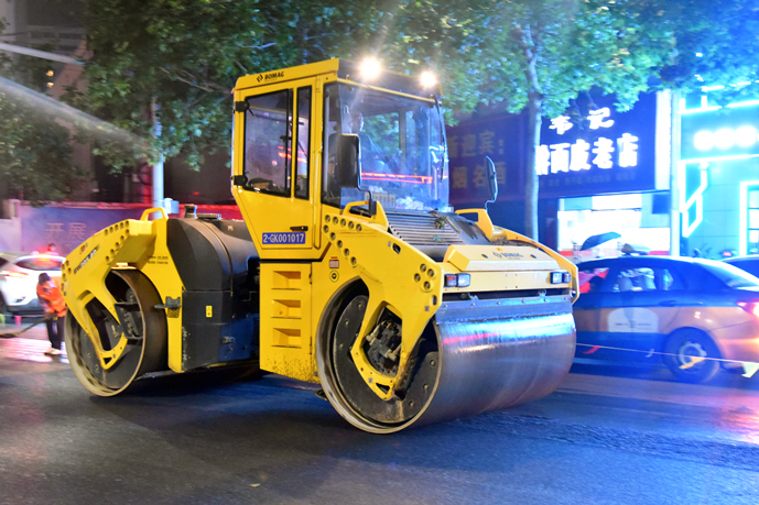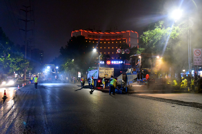 為加快施工進(jìn)度,最大程度地減少對(duì)周邊居民的影響,自進(jìn)駐施工以來,項(xiàng)目部克服交通壓力大,天氣炎熱,沿線車輛多等困難,投入施工技術(shù)人員和交通協(xié)管人員20余人,銑刨機(jī)、挖掘機(jī)、攤鋪機(jī)、壓路機(jī)、各類運(yùn)輸車輛等機(jī)械設(shè)備30余臺(tái),采取半幅施工的方式,24小時(shí)晝夜奮戰(zhàn)。6月16日晚,為保證最后階段的瀝青混凝土攤鋪施工,公司從各部門抽調(diào)人員協(xié)助項(xiàng)目現(xiàn)場(chǎng)的交通管理,全力保障倉庫路提前完工通車。