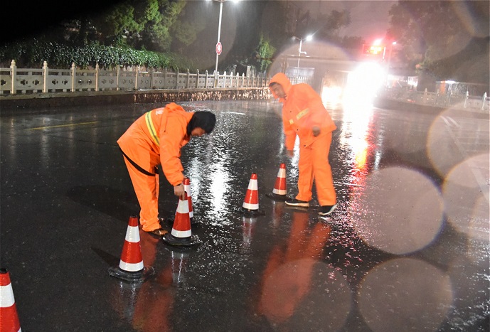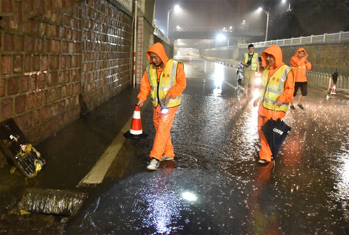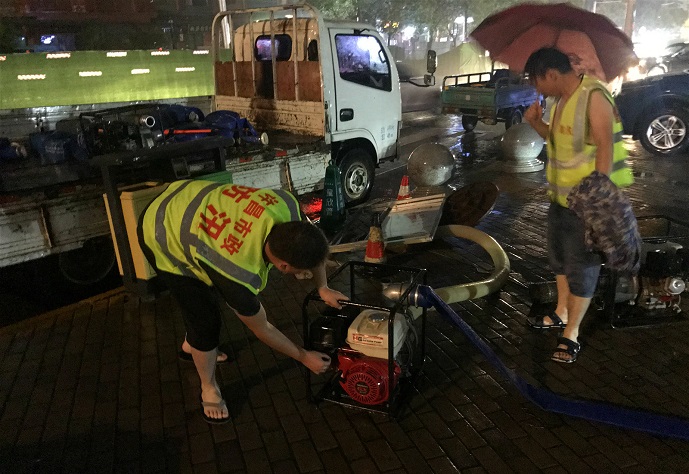 暴雨無情,人有情。許昌市政集團出動103人對市區(qū)36條易積水道路和6個立交、1個隧道進行值守,保證了車輛和行人安全通行。出動114人對勞動路人民路路口、萬豐路、察院西街、灞陵路、延安路等13個積水點進行抽升,確保積水及時排除。安排3支應急分隊共計90人按區(qū)域對道路積水情況進行拉網式排查,發(fā)現積水立即組織抽升。