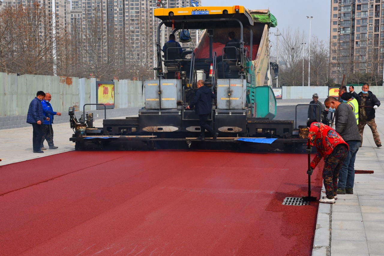 3月4日7時,在生產機器隆隆的轟鳴聲中,許昌市政集團自主生產的第一車彩色瀝青混凝土成功出廠。伴隨著冉冉升起的朝陽,滿載著彩色瀝青混凝土的運輸車駛向施工工地。